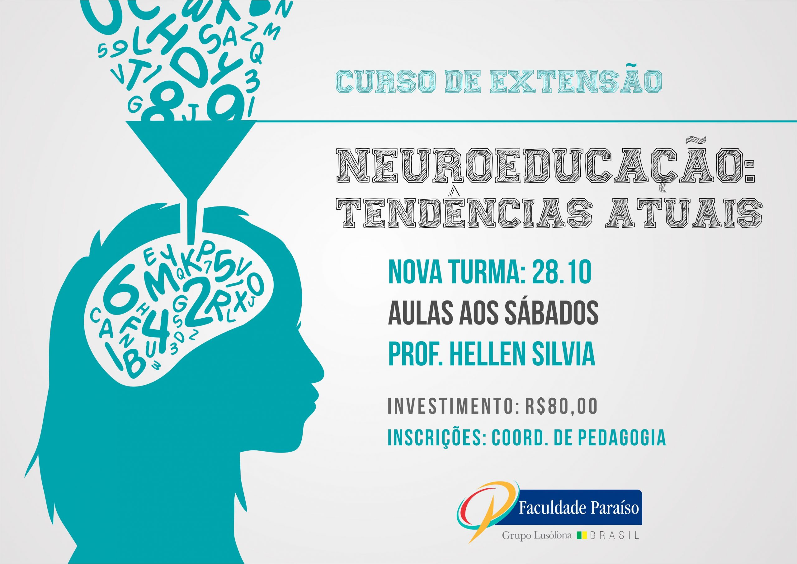 A Faculdade Lusófona RJ está com inscrições abertas para o curso de Extensão em NeuroEducação. As aulas começam no próximo dia 28 de Outubro e serão aos sábados, de das 9 às 16h, com a Profa. Hellen Silvia. O curso, que vai até o dia 16 de Dezembro, tem um investimento único de 80 reais. As inscrições …