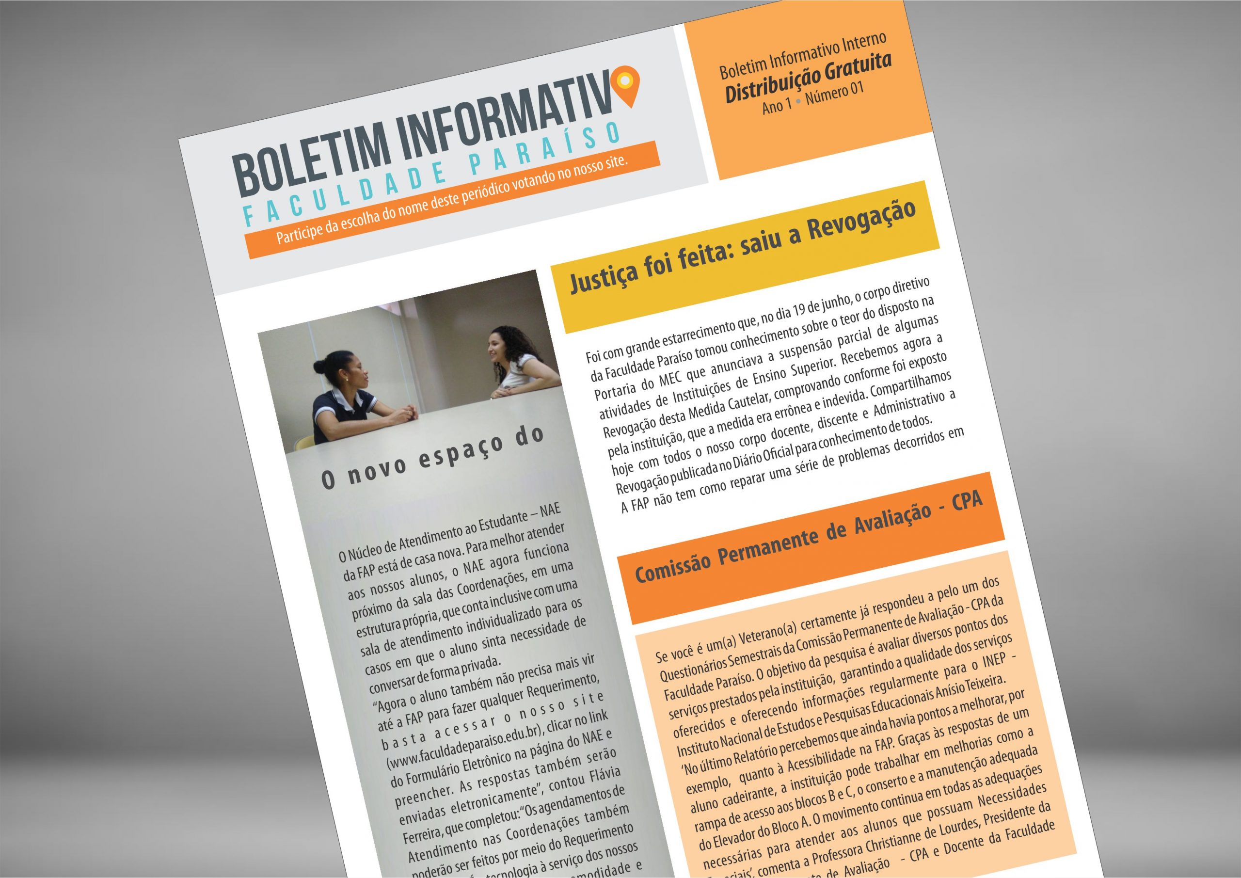 Nesta Segunda, 09 de Outubro, nossos alunos foram surpreendidos com a 1º Edição do novo Boletim Interno da Faculdade Lusófona RJ. O periodíco, que será produzido quinzenalmente e tem distribuição gratuita, veio para consolidar a Comunicação interna da Instituição em mais um formato: o impresso. O Boletim ainda não tem um nome, que está em …